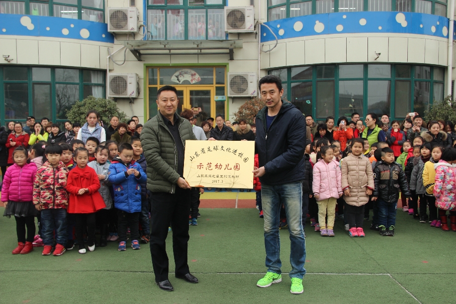 啟動儀式上,當中國國家女子足球隊原主教練張海濤向園長王偉授予了牌匾之后,美里湖中心幼兒園就正式成為了濟南市第一家“山東省足球文化進校園示范幼兒園”的公辦幼兒園。隨后足球俱樂部總經理張凱向家長朋友們詳細介紹了足球課程對孩子們健康發展的益處,家長們聽的熱情高漲,并用熱烈的掌聲表示對幼兒足球俱樂部成立的支持與贊同。最后,教練員用專業的足球動作向大家展現了足球的魅力,更帶領孩子們現場體驗了足球課程的精彩內容,所有在場的孩子們都躍躍欲試想一顯身手。