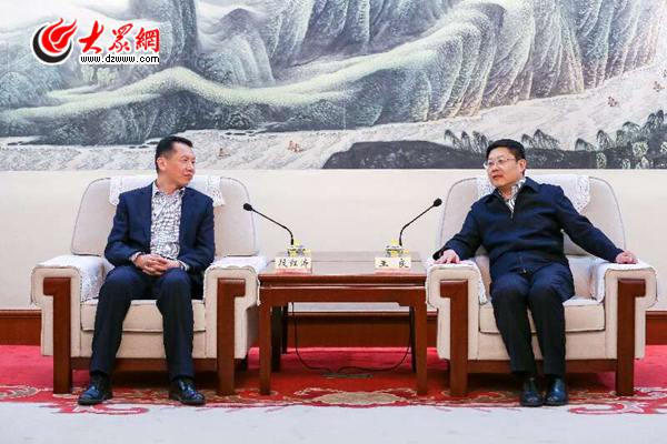 萊蕪市委書記、市人大常委會主任王良(右)會見建行山東省分行黨委書記、行長段紅濤(左)。