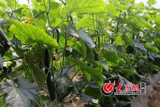陳明利蔬菜基地里單株可采摘16支的黃瓜