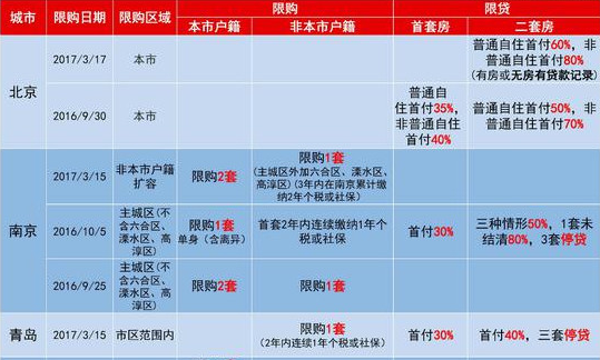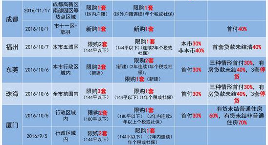 以下是去年以來全國部分城市限購政策: