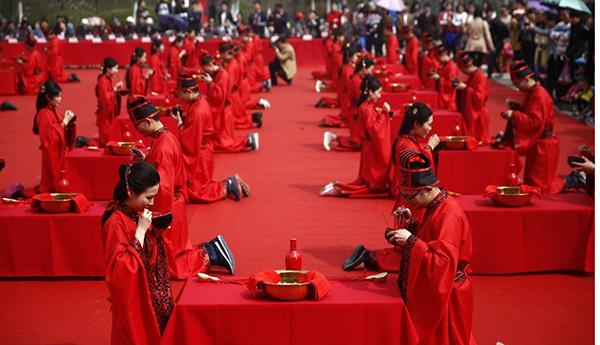 大眾網(wǎng)4月27日訊 《左傳》有云“中國(guó)有禮儀之大,故稱夏;有服章之美,謂之華。”禮儀、服章是華夏民族文化的精髓,28日上午9時(shí)30分,濟(jì)寧十對(duì)新人將著漢服、尋周制,整額冠,撫霓裳,在鄒城上九古村舉行集體婚禮,重現(xiàn)炎黃華美之衣冠,傳承中華典雅之儀范。