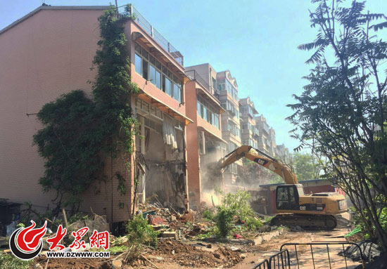 今天歷城歷城城管部門組織了150余人的執法隊伍,對花園路5號化纖小區內違法建筑進行集中拆除。執法人員先動用大型機械拆除了小區內一棟三層違法建筑,該建筑主要由物業管理人員使用,是小區內面積最大的一處違法建筑。