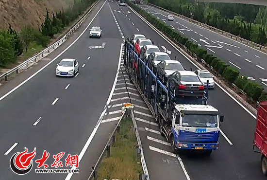 萊蕪高速交警仔細查看發現,該車為上海拍照,裝載有12輛轎車。