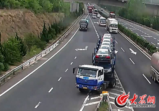 民警立即通過高音喇叭喊話,提醒其它車輛注意避讓,并警告違法商品車運輸車快速駛離。交警仔細查看發現,這輛上海牌照的商品運輸車上裝載著12輛嶄新的轎車,倒車前已經駛過分道口2分鐘,民警據此推測該車至少倒車500米以上。