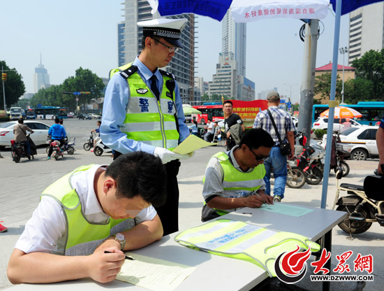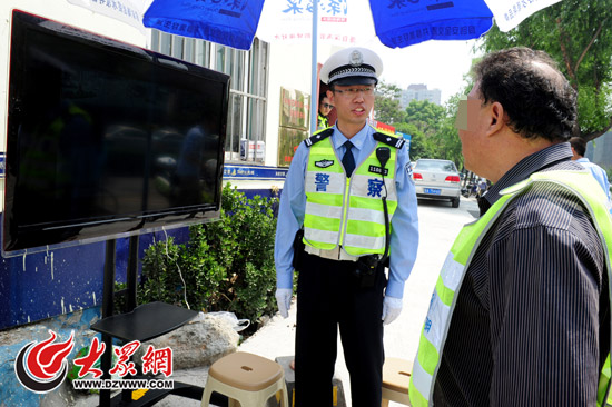 大眾網(wǎng)濟(jì)南5月10日訊 今天,濟(jì)南天橋交警將交通安全教育課搬到馬路上,對(duì)闖紅燈、逆行的行人和非機(jī)動(dòng)車車主進(jìn)行安全教育。