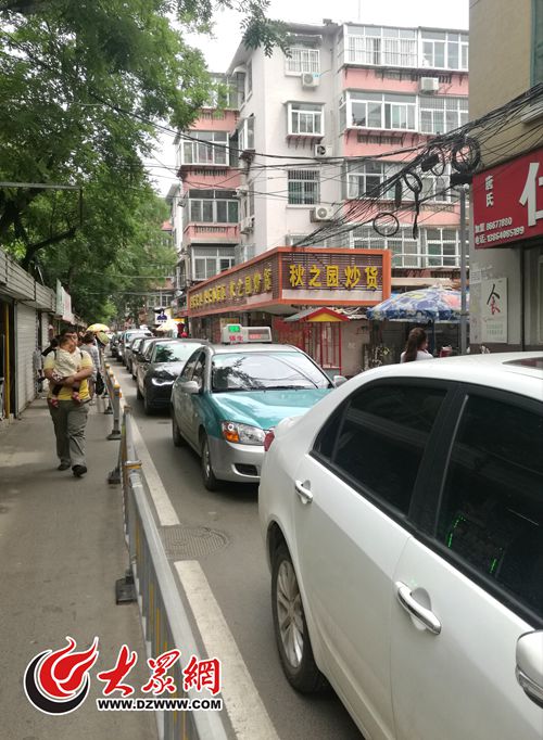 被堵在小吃街南段的車主趙先生吐槽說,從省實驗中學對面的入口駛進來,到現(xiàn)在快20分鐘了,還停留在這條500多米長的小吃街內(nèi),只能一點一點往外挪。家住附近的蔣女士告訴記者,因為道路狹窄,經(jīng)常會有濟南市婦幼保健院的救護車被堵在路上,每次看到這種情景都十分揪心。同時,記者還發(fā)現(xiàn),該路段不僅機動車通行受阻,非機動車輛通行也十分不易,一旦有車輛停放在路邊,電動車就必須在車輛之間的“夾縫”中穿行,一不小心就會產(chǎn)生刮蹭。