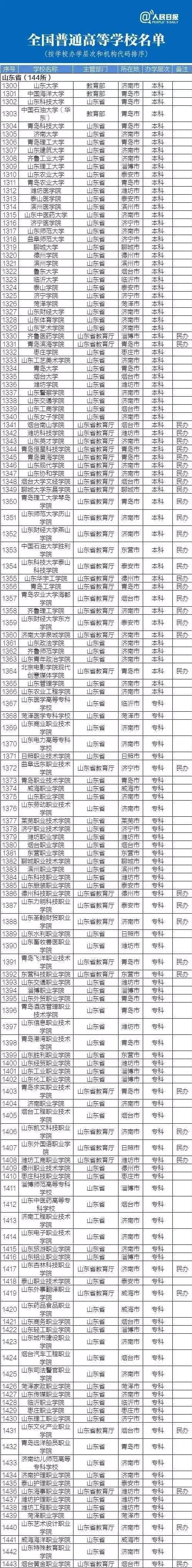 以下是教育部權威發布的最新山東正規高校名單