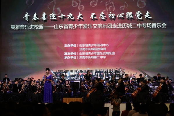 高雅音樂進校園,是山東省青少年活動中心下屬的山東省青少年愛樂交響樂團近年來持續開展的一項公益性系列活動,由青少年演奏給青少年聽,也成為該活動的一大特色。相信通過此系列活動,會培養出一批藝術愛好者,增加一批交響樂粉絲,同時,更好地繁榮校園文化,讓藝術之花在校園絢麗綻放!