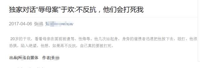 當然,很多看過今年3月那篇“刺死辱母者”的報道,以及后續媒體報道的人可能會問了:于歡怎么可能沒有遭到生命威脅?她母親不是被“陰莖蹭臉”了嗎?而且她母親還說對方要“強奸”她,于歡也說自己被圍毆,還說如果自己不反抗對方會打死他,這怎么可能只是“輕微”的暴力侵害呢?