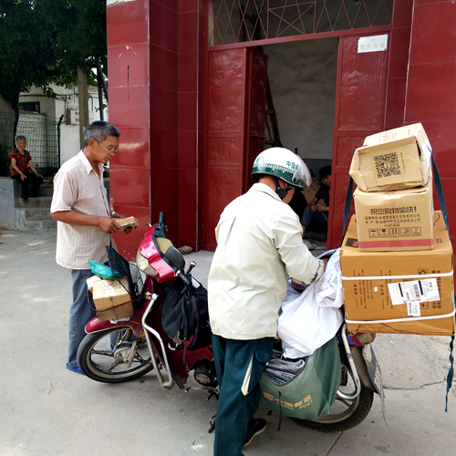 6月21日上午,記者在西營鎮郵電支局見到了路云海,他剛從外面回來。支局的趙局長說,昨天送件的半路上下起暴雨,為了保護包裹,路云海只好把他負責路段的最后三個村子的包裹押后,趁著今天上午的空閑,把它們送過去。