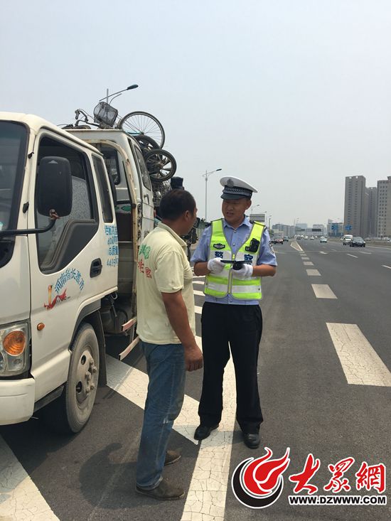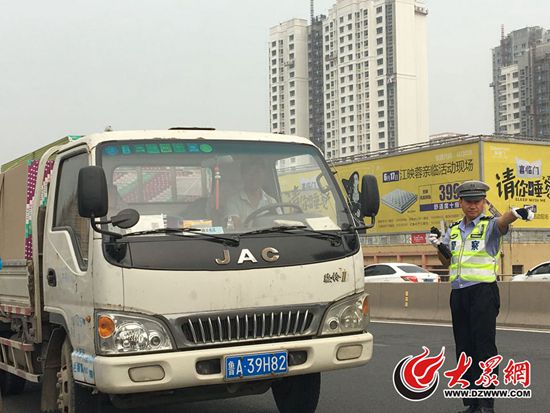 即使當天36度的高溫,凌美煌和他的同事依然站在高架路的下口處執勤,不一會兒,汗水就濕透了衣裳。高架路上,中午雖然車流量少,但是經常出現超載小貨車和非法改裝的面包車,“這類車存在非常嚴重的安全隱患,必須嚴打,一輛也不能放過。”凌美煌說。