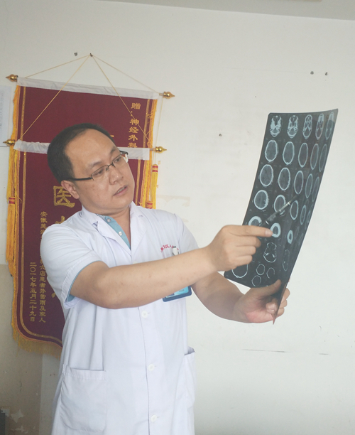 “我是凌晨4點接到急診科的電話,劉警官已經(jīng)到急診科1個多小時了!眲⑾蠕h的主治醫(yī)生王衍廷說,他在急診室見到劉先鋒時,劉先鋒已經(jīng)陷入了淺昏迷狀態(tài),“急診科的醫(yī)生說,劉警官剛來急診室時還是清醒的,建立完病歷卡后,就昏迷了!蓖跹芡⒎Q,醫(yī)院給劉先鋒做完CT檢查后,發(fā)現(xiàn)他腦出血量40多毫升,在急診室做完測血壓等自查項目后,把他送到醫(yī)院神經(jīng)外科的重癥監(jiān)護室,最后確診為血管性腦出血。6月1日,經(jīng)歷約4個小時手術(shù),劉先鋒被搶救了回來。“腦出血風險非常大,死亡率很高,幸好劉警官來得及時,我們搶救得也及時,再晚來1個小時,可能就救不回來了!”王衍廷慶幸地說道。