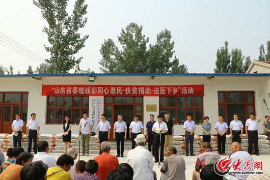 活動期間,山東省社會新階層黨外知識分子聯誼會和山東省社會組織聯合會副會長單位沃爾德集團金諾國際拍賣有限公司慷慨解囊,捐贈18萬元為三個幫包村購買一批化肥等農用物資,用實際行動參與統一戰線“同心扶貧攻堅行動”,充分體現了新的社會階層人士義利兼顧、回報社會的責任擔當和奉獻精神。山東省立醫院、山東大學齊魯醫院、濟南萬厚中醫院組成涉及10余個科室的專家團隊,現場為200余名村民免費查體、義診治病,受到村民們的熱烈歡迎。