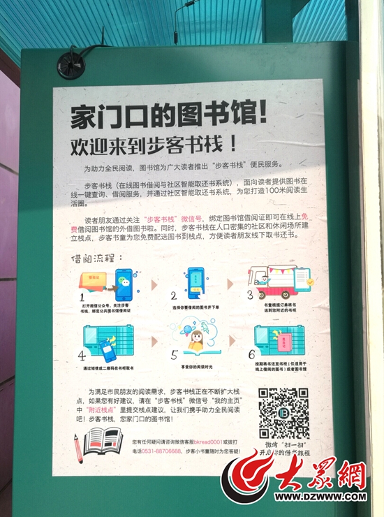 據(jù)劉經(jīng)理介紹,如果沒(méi)有山東省少年兒童圖書館的借閱證,也可以通過(guò)“步客書棧”微信公眾號(hào)進(jìn)行辦理,在“借閱證辦理”一欄輸入個(gè)人信息并繳納100元押金即可。