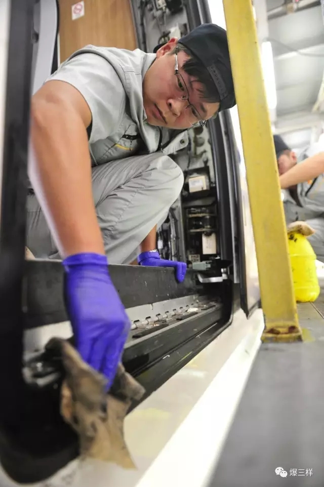 每清理完一個側門,梁訊寧便一路小跑,奔向下一個側門,絲毫不敢耽擱,他心里非常清楚,自己對工作的怠慢,會影響一趟列車的運行。