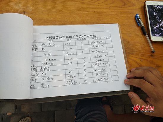 25日上午,零工市場院內 用工方在口述自己的用工需求