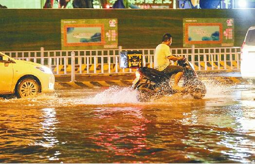 6日晚,一場急雨過后,張莊路茶葉市場附近一片積水。 記者劉玉樂 攝
