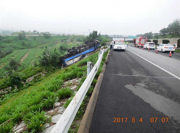 8月1日10時(shí)許,一輛冀BEXXX牌照的普通貨車沿沈海高速由煙臺(tái)往青島方向行駛,在經(jīng)過475公里大修施工路段之前發(fā)現(xiàn)有限速60的標(biāo)志,但未引起重視,到施工路段時(shí)前方車輛突然減速,事故車輛剎車不及急打方向盤,造成車輛翻進(jìn)路邊溝里,車內(nèi)駕駛員的孩子受輕傷。
