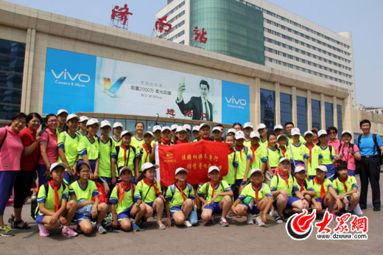 “終于到啦!”聽到遠處傳來孩子的歡呼聲,大眾網記者在濟南火車站接站口看到了站內兩列閃動著的熒黃色身影——新疆生產建設兵團第十二師的中小學生們排著整齊的隊伍抵達泉城!皾嫌幸稽c悶熱,跟我們那里的熱不太一樣”,“其實沒有火焰山熱啦”,“雖然熱一點但是天氣很好很晴朗啊,終于到山東了真開心!”孩子們你一言我一語得交談著,興奮無比,一點都不像坐了40多個小時火車的樣子。隨行老師告訴大眾網記者,從上火車的那一刻開始,孩子們的心就飛往了山東,而對此次夏令營訪學活動的第一站——山東省博物館,孩子們更是表現出了無比的期待。