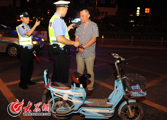 大眾網濟南8月14日訊 前天晚上,濟南天橋交警在北園大街查處酒駕時,一輛電動車快車道內左搖右晃的行駛,民警攔下后發現騎車人渾身酒味。經檢測,騎車男子王某酒精呼氣值為323mg/100mL,達到醉駕標準,民警依法對他處罰款50元,而王某違法走機動車道的行為也被罰款20元。