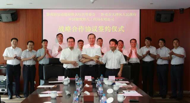 據介紹,從2017年5月2日濟南新舊動能轉換先行區成立,到8月12日促成三方簽約,中建八局一公司僅用102天成功促成了此次戰略合作協議的簽署。