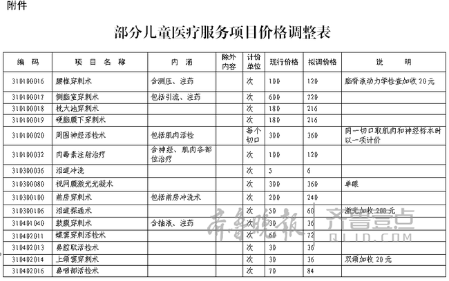 記者從煙臺市物價部門了解到,根據(jù)《關(guān)于印發(fā)〈貫徹國衛(wèi)醫(yī)發(fā)〔2016〕21號文件加強兒童醫(yī)療衛(wèi)生服務(wù)改革與發(fā)展工作方案〉的通知》(魯衛(wèi)醫(yī)字〔2016〕31號)的要求,煙臺市調(diào)整部分兒童醫(yī)療服務(wù)價格。6歲(含)以下兒童手術(shù)價格,在現(xiàn)行價格基礎(chǔ)上提高20%。6歲(含)以下兒童一般治療操作、有創(chuàng)活檢、探查等項目價格,在現(xiàn)行價格基礎(chǔ)上加收20%。