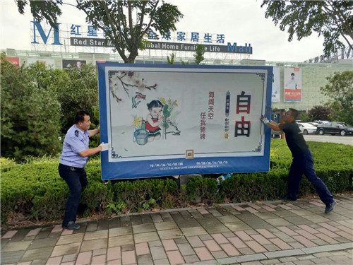 據了解,張店區城管執法局從年初累計整改無相關手續、存在安全隱患的戶外廣告1482塊、約2萬平方米,清理門頭商鋪圖文廣告2820處,并加大對商業聚集區、車站周邊公共設施公益廣告的投放宣傳力度,8月新設“強基礎、轉作風、樹形象” 城管專項公益廣告37處,其中墻體大型手繪宣傳1處。