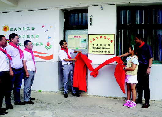 揭牌儀式結束后,半島學生記者代表半島都市報將2000冊愛心圖書捐贈給了后寨小學的學生。這2000冊圖書,匯聚了諸多“愛心”。除了“半島公益”與“小小力”愛心基金以及部分愛心企業共同募集外,青島26中的師生在張小玉老師的組織下還捐贈了600余冊圖書!爱斂吹胶⒆觽兛磿鴷r入迷的眼神時,太讓人感動了。”游學團隨行記者說道。