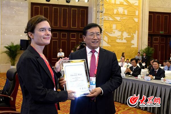 濟南市委副書記、濟南市市長王忠林為ENGIE中國公司首席執(zhí)行官夏瀾女士頒發(fā)聘書。