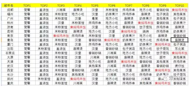 爆三樣注意到,上述3個城市中,最喜愛的菜系前三位基本被簡餐、蓋澆飯、米粉面館占據。由于簡餐、蓋澆飯和米粉面館范圍太寬,所以,在南京、濟南、鄭州3地中,黃燜雞米飯基本可以被評為大學生最喜愛的菜系。
