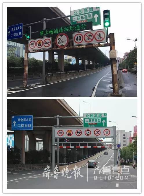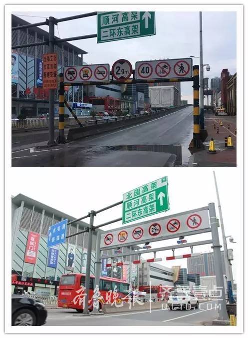 北園高架歷山路上橋口限高欄整治前后對比