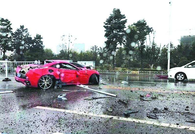 昨天下午,有市民爆料,在唐島灣附近的濱海大道上,一輛價(jià)值幾百萬(wàn)的法拉利跑車(chē)出車(chē)禍,撞得很?chē)?yán)重。記者趕到事發(fā)地點(diǎn)時(shí),受損車(chē)輛已被拖走,被撞毀的隔離護(hù)欄散落一地,過(guò)往車(chē)輛紛紛避讓?zhuān)瑤酌ぷ魅藛T正在進(jìn)行現(xiàn)場(chǎng)清理。從事故現(xiàn)場(chǎng)看,當(dāng)時(shí)車(chē)速很快,被撞毀的護(hù)欄有幾十節(jié)。現(xiàn)場(chǎng)一位目擊者給記者看了一段錄像,紅色的法拉利橫臥在馬路中間,還亮著雙閃,隔離護(hù)欄到處都是,占據(jù)了由東向西兩個(gè)車(chē)道,過(guò)往的車(chē)輛行駛十分緩慢,造成一定擁堵。從錄像中看到,法拉利的前保險(xiǎn)杠已經(jīng)脫落,兩個(gè)大燈也被撞爛,右前輪也趴在地上,一輛出租車(chē)被撞受損。幸運(yùn)的是,由于這輛法拉利車(chē)體比較低,隔離護(hù)欄并沒(méi)有穿插到車(chē)內(nèi)。“我當(dāng)時(shí)就聽(tīng)到一聲巨響,隔離護(hù)欄稀里嘩啦撞得到處都是。”一位路過(guò)的市民說(shuō),當(dāng)時(shí)車(chē)速比較快,而且正下雨,路面非常滑。