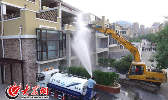 今天濟(jì)南市市中區(qū)城管部門對(duì)東方美郡和中海國(guó)際14戶違建別墅統(tǒng)一拆除。