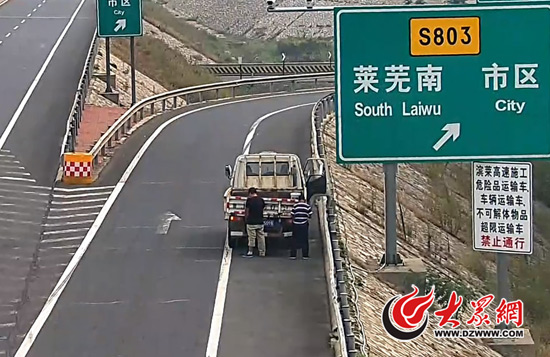 昨天上午,一輛貨車在在萊泰高速萊蕪南出口違停,駕駛?cè)讼萝囆”恪?/p>