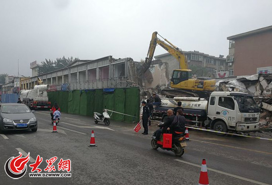 10月1日,濟南歷下城管拆除山大路北頭的沿街房,總計1.2萬平方計劃5天拆完。