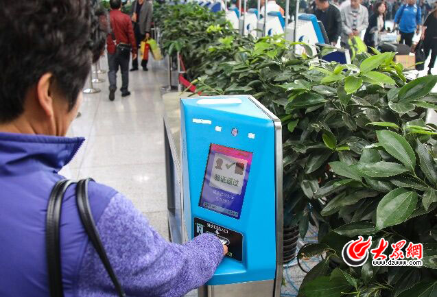 大眾網濟南10月13日訊 今天起,濟南機場實名制驗證系統正式啟用了。旅客過安檢,電子眼自動驗證身份證有效性及確認人證統一,確認后才放行。