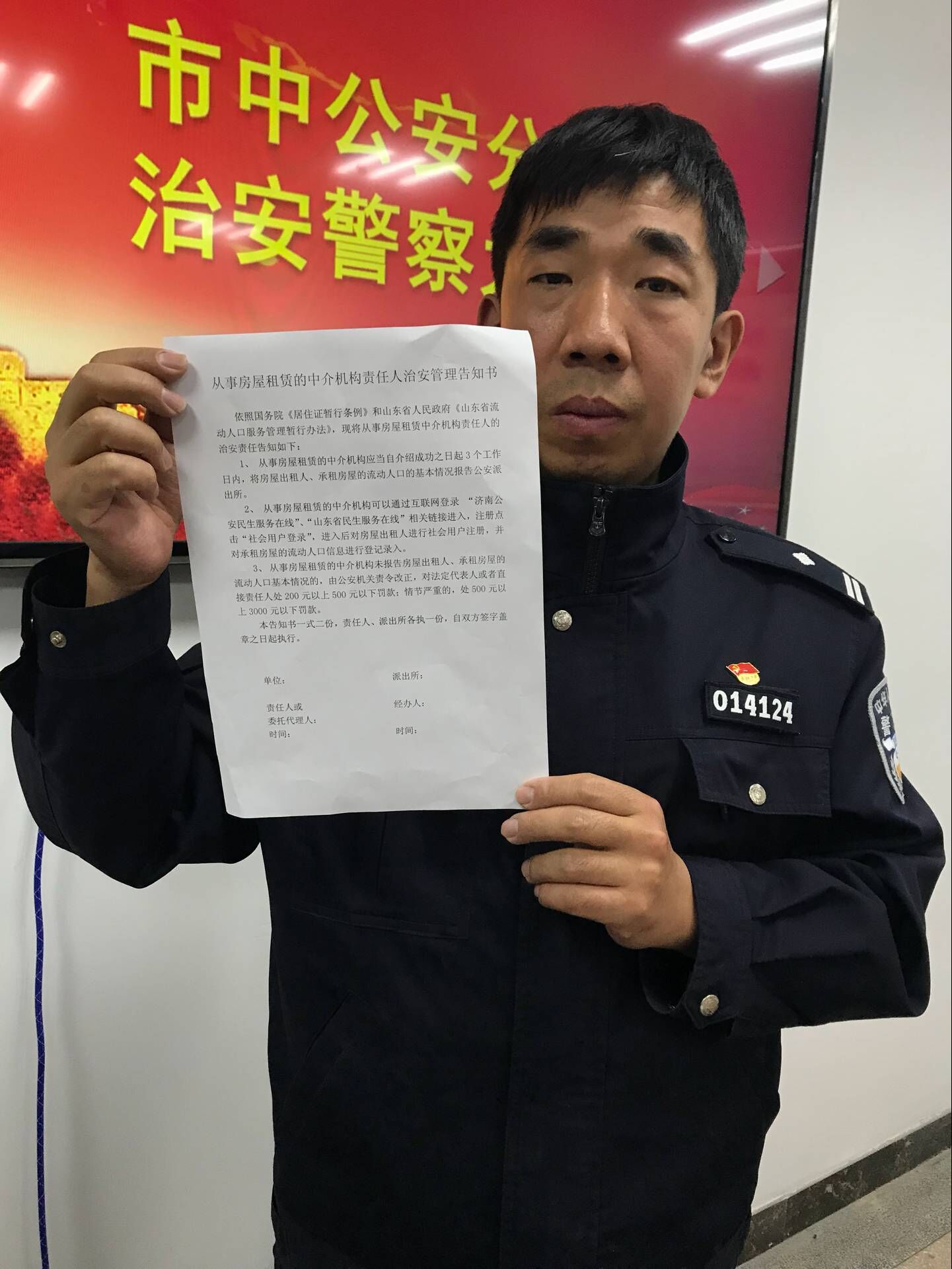 市中公安分局治安大隊戶政管理科科長胡楊介紹,現在租房子的人越來越多,出租房屋中很可能隱藏著大量不安全因素,例如傳銷甚至在逃人員等等。通過向公安機關報備租房信息,既是對房屋出租雙方負責,更有利于加強對流動人口的服務和管理。按照《山東省流動人口服務管理暫行辦法》,從事房屋租賃的中介機構應當自介紹成功之日起3個工作日內,將房屋出租人、承租房屋的流動人口的基本情況報告公安派出所。報備方式也十分簡單,中介機構只需通過互聯網登錄“濟南公安民生服務在線”“山東省民生服務在線”等鏈接,注冊點擊“社會用戶登錄”,進入后對房屋出租人進行社會用戶注冊,并對承租房屋的流動人口相關信息進行登記。