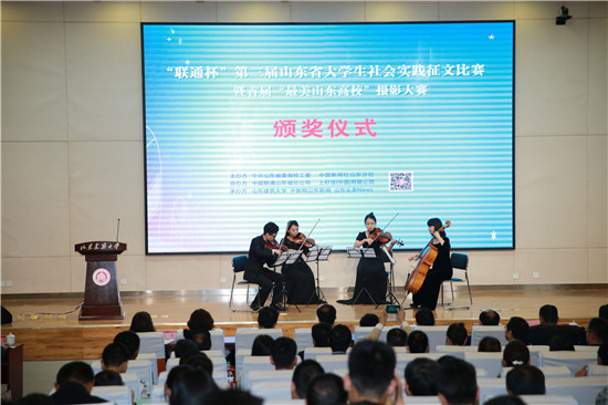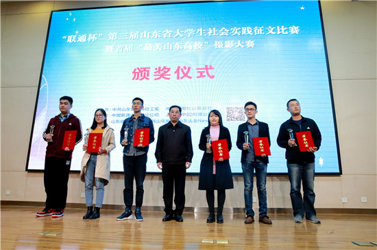 大眾網10月15日訊 (記者 張艷)“聯通杯”第三屆山東省大學生社會實踐征文比賽和首屆“最美山東高校”攝影大賽均由中共山東省委高校工委和中國新聞社山東分社聯合主辦。中國聯通山東省分公司、上好佳(中國)集團協辦。頒獎儀式由山東建筑大學、中新網山東新聞、中新社山東頭條news微信公眾號承辦。
