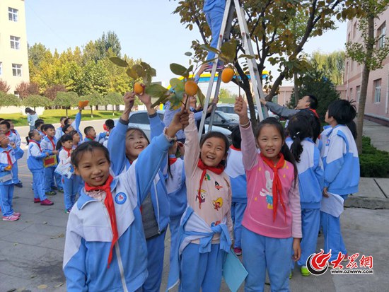 23日,濟南市歷城區東城實驗小學2015級四中隊的學生親手采摘柿子,過了個有意義的采摘節。