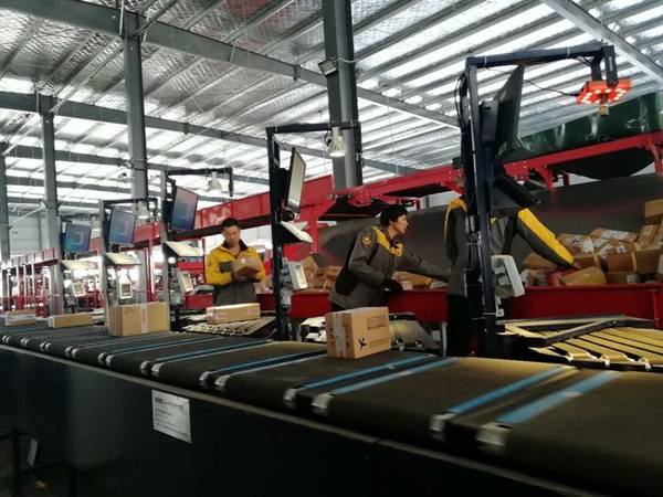 在韻達快遞臨沂轉運中心,交叉帶自動分揀機正在分揀包裹,工作人員將包裹掃描后放到供包臺上,隨傳輸帶運行的包裹就會被自動分揀到位于兩側、相應的集包中。臨沂韻達快遞有限公司總經理張利豹對記者說,今年10月份,他們投資580多萬購進了這套設備,分揀效率大大提高,以前60多個人每小時能分揀4000—5000件包裹,現在24個人每小時就能分揀1萬件左右,且錯分率僅為1/10000左右,由于人工暴力分揀造成的包裹損壞情況也不會存在。