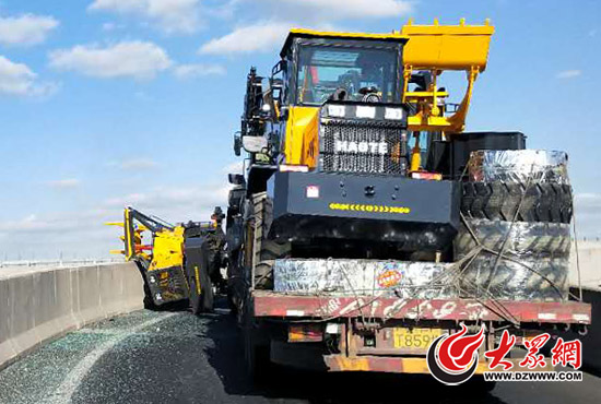 大眾網濟南11月20日訊 18日下午14:30左右,青島交警濰萊高速民警巡邏至青新高速郭家埠立交時發現,一輛拉載挖掘機的大貨車停在榮烏高速轉青新高速的匝道上。原來,一輛挖掘機從貨車上側翻倒在了匝道上阻塞了交通,大貨車司機稱這些挖掘機是從萊州發往廣西的,因為轉彎時車速較快,固定挖掘機的繩索發生斷裂,導致一輛挖掘機側翻。民警通知救援單位派吊車來清障,經過半個多小時的忙碌,側翻的挖掘機被移出現場。目前,濰萊高速交警正對萊州多家挖掘機制造商、物流公司發放安全隱患整改通知書,要求他們及時改正運輸問題。(大眾網-山東24小時記者 賀輝 通訊員 付永斌)