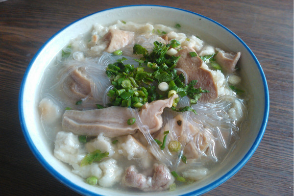 葫蘆頭泡饃,簡言之,就是豬大腸泡饃。其制作工序和羊肉泡饃差不多,只是把羊肉變成豬大腸而已。葫蘆頭源遠(yuǎn)流長,可追朔到唐代。相傳唐高宗龍朔元年,有一胡姓在朱雀大街開設(shè)了一家"雜羔店",專賣豬雜碎。一天,藥圣孫思邈偶然路過此地,入店吃了一碗煎白腸,覺得腸子腥味太大,詢及店家,知其制作方法不當(dāng)。于是,孫思邈當(dāng)即給店主開了一個八珍湯的方子,讓其如法泡制,果然腸肥而不腥,湯油而不膩,味道鮮美可口,從此顧客盈門。店主為感謝藥圣的指點(diǎn),便在店門首懸一藥葫蘆以示紀(jì)念,并將所賣食品取名“葫蘆頭”。行家認(rèn)為葫蘆頭不在于肉在于湯,故而制湯的方法很講究。先把新鮮豬骨頭洗凈砸碎,入鍋燉熬,撇去浮沫,再入白條雞、豬肉,加食鹽、調(diào)料包(即傳說孫思邈配制的八珍調(diào)味品),繼續(xù)用小火熬煮,到湯汁濃白似乳為止。葫蘆頭飽饃的品質(zhì)關(guān)鍵在調(diào)料和湯上,有好湯才能吃出好滋味。