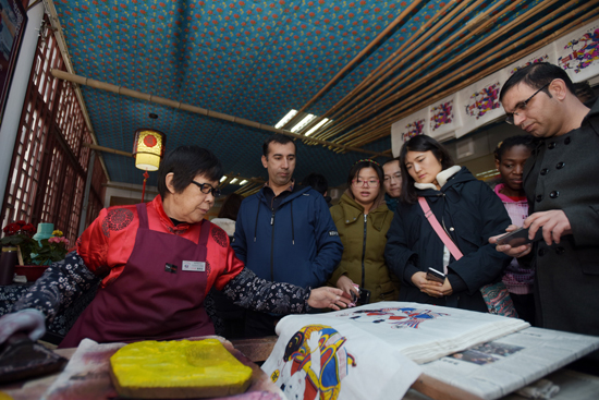 11月25日,“‘感知山東’——百名外國留學生看山東”活動走進濰坊楊家埠民間藝術大觀園,留學生們實地參觀體驗了濰坊風箏、木版年畫的制作過程。