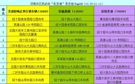 濟南市區機動車亂變道違法高發路口