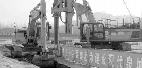 12月1日, 在濟南濟濼路穿黃隧道施工現(xiàn)場, 挖掘機開挖盾構(gòu)機工作井。 本報記者 王鴻光 攝