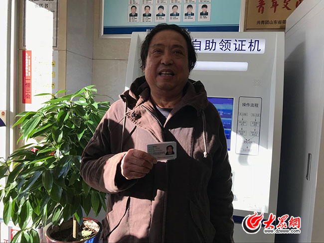 這是歷城區公安分局戶政大廳內的身份證自助領證機,12月8日上午,濟南市民韓先生僅用1分多鐘,就在這臺機器上領到了制作好的新證。
