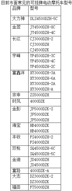 目前市面常見的可掛牌電動摩托車型號(截至2017年12月)