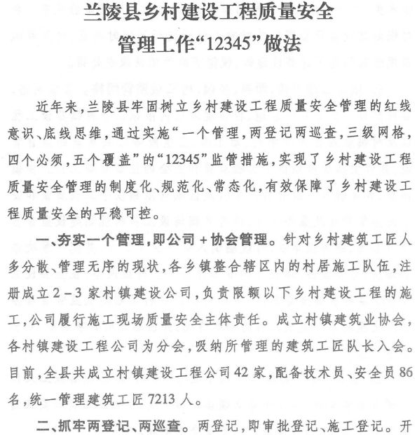 附:蘭陵縣鄉村建設工程質量安全管理工作“12345”做法