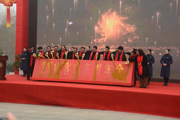 大眾網1月1日訊(記者 張艷) 今日上午9:30分,山東臺兒莊古城在西門舉行了盛大的“開福門”迎新年大典儀式,山東省旅游發展委、棗莊市市委市政府等相關領導出席,2018“好客山東”賀年會就此啟動,第六屆臺兒莊古城大廟會也同時拉開了大幕。