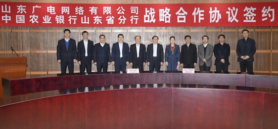 大眾網訊(記者 高雯)1月18日,山東廣電網絡有限公司與中國農業銀行山東省分行簽署戰略合作協議,雙方緊密攜手、強強聯合,將在金融服務、城市服務智能化信息化等多領域展開深入合作,實現資源優勢互補,共同開啟產業模式的新探索。山東廣電網絡有限公司黨委書記、董事長李建華,中國農業銀行山東省分行行長益虎分別出席簽約儀式并致辭,山東廣電網絡有限公司黨委副書記、總經理郝克遠與中國農業銀行山東省分行副行長翟世勇代表雙方簽署戰略合作協議,山東廣電網絡有限公司總經理助理尹志波、董事會秘書劉洪昌、集團客戶服務部副總監姬虎,中國農業銀行山東省分行辦公室主任王剛胤、機構業務部總經理李增義出席簽約儀式。